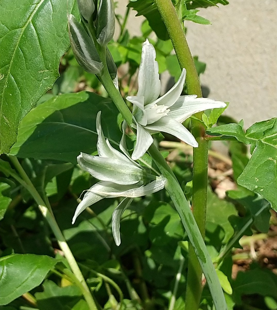 翠花 もはや何が植わっているのか判らない カオスな我が家の庭 今日発見したのは オーニソガラム ヌタンス あと 何やら紫の蕾も 明日あたり 咲くかな